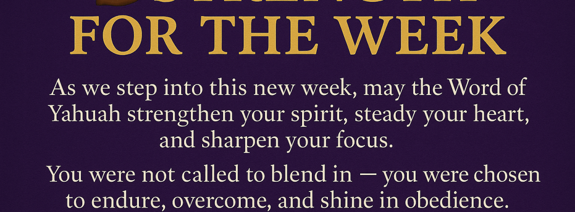 As we step into this new week, may the Word of Yahuah strengthen your spirit, steady your heart, and sharpen your focus. You were not called to blend in — you were chosen to endure, overcome, and shine in obedience. This week, stand firm. Speak truth. Walk in power.